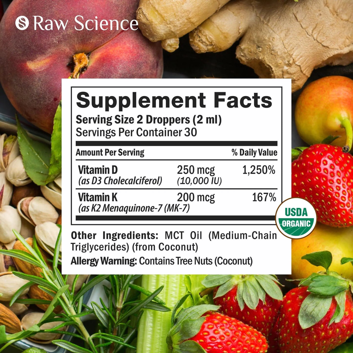 EFFICIENT ABSORPTION- Raw Science K2 D3 drops deliver D3 K2 vitamin 5000 iu & 125 mcg in one dropper, ensuring fast, effective uptake. Simplify your routine while getting the essential benefits of vit D plus K for comprehensive health maintenance.