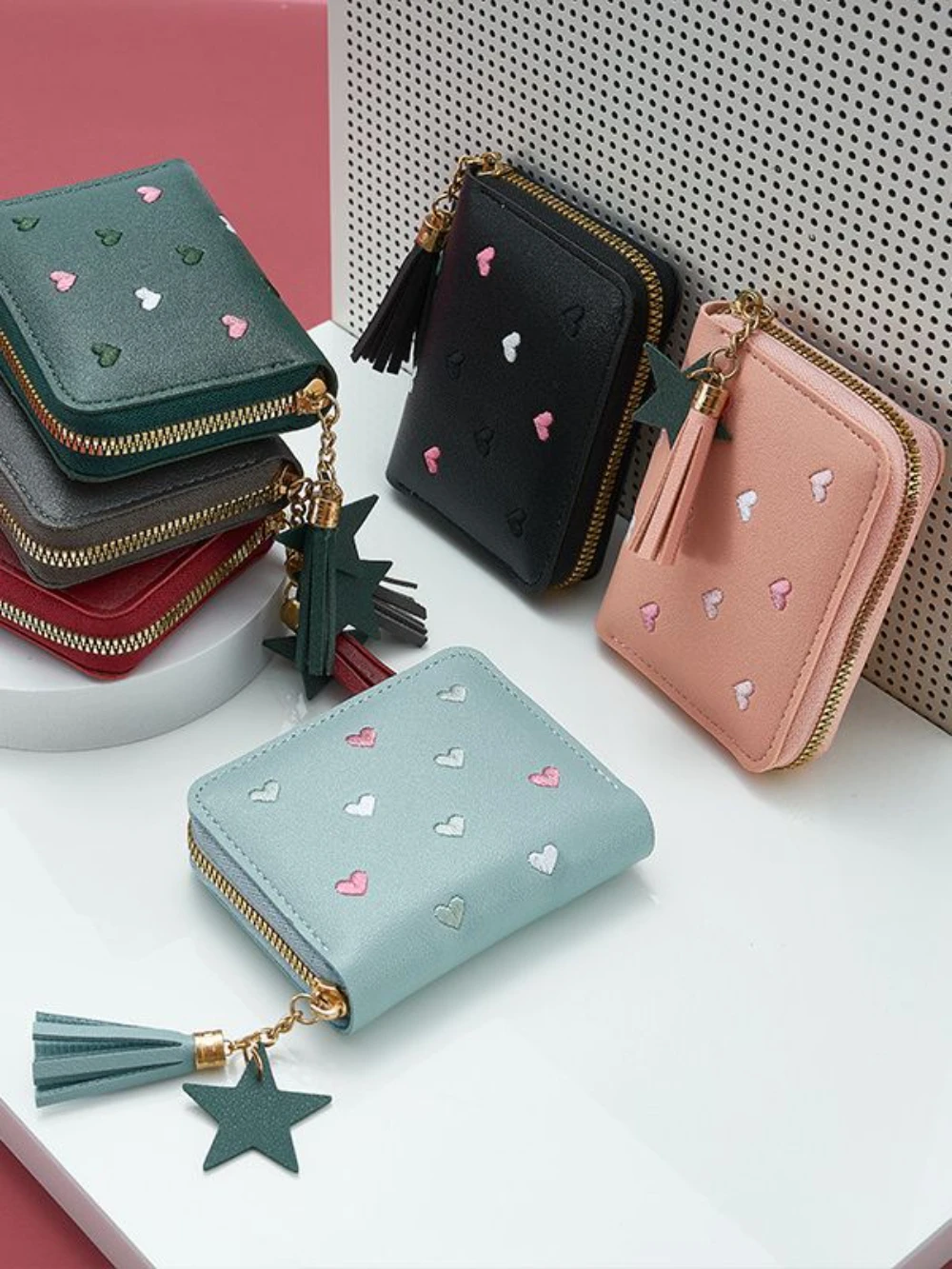 Women Small Wallet Ladies Mini Tassel Wallet Cute Girl Short Zipper Lovely Pu Leather Coin Purse Female Hand Wallet Purse 1PC